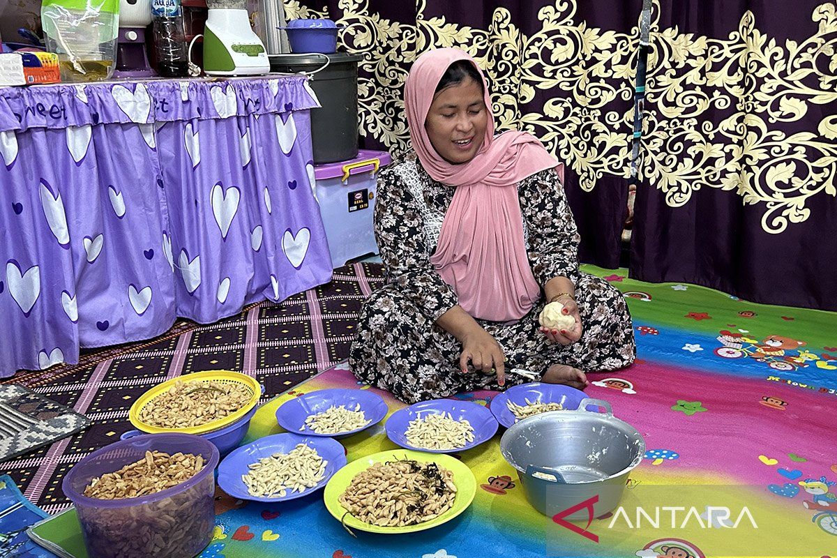 “Cuma buat Kacang Tojin saja. Selebihnya nanti apa yang dimau anak, beli saja sedikit. Karena kalau bikin-bikin yang ribet-ribet, alat-alatnya susah, tidak ada alatnya, mixer tidak ada,” katanya.