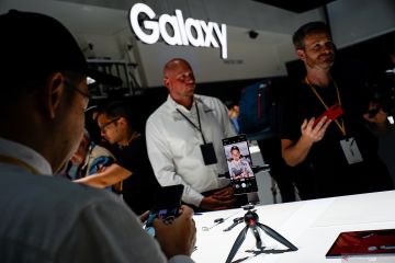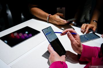 Pengunjung mencoba smartphone terbaru dari Samsung, Galaxy Note 10 saat peluncurannya di Barclays Centre, Brooklyn, New York, Amerika Serikat, Rabu (7/8/2019) malam waktu setempat. Samsung resmi merilis smartphone Galaxy Note 10 dan Galaxy Note 10 Plus dalam acara "Galaxy Unpacked" di lokasi tersebut. ANTARA FOTO/REUTERS/Eduardo Munoz/wsj.