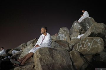 Jamaah haji berdoa di Jabal Rahmah saat Wukuf di Arafah, Arab Saudi, Sabtu (10/8/2019). ANTARA FOTO/REUTERS/Umit Bektas/pras.