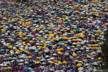 Ratusan ribu jamaah haji berdoa di Jabal Rahmah saat Wukuf di Arafah, Arab Saudi, Sabtu (10/8/2019). ANTARA FOTO/REUTERS/Umit Bektas/pras.