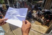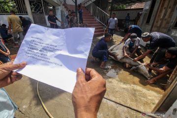 Panitia kurban membaca nama-nama kelompok kurban saat akan menyembelih hewan kurban di Dusun Tumpok Dalam, Muara Dua, Lhokseumawe, Aceh, Minggu (11/8/2019). Umat muslim merayakan Iduladha 1440 H untuk memperingati peristiwa Kurban, ketika Nabi Ibrahim rela mengurbankan anaknya untuk Allah sebagai rasa syukur atas rezki yang diberikan Allah SWT. ANTARA FOTO/Rahmad/hp.