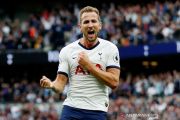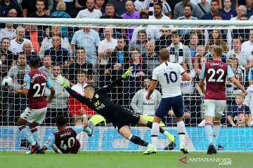 Pesepak bola Tottenham Hotspur Harry Kane melakukan selebrasi usai membobol gawang lawannya Aston Villa dalam laga minggu pertama Premier League, di Stadion Tottenham Hotspur, London, Inggris, Sabtu (10/8/2019). Hotspur berhasil melibas Villa 3-1 dan Harry Kane menyumbang dua gol untuk timnya. ANTARA FOTO/Reuters-Matthew Childs/hp.