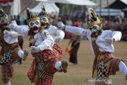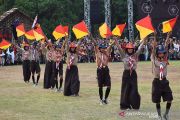 Sejumlah anggota Pramuka mengenakan pakaian tradisional Papua menari di Apel Besar Peringatan Hari Pramuka ke-58 tingkat nasional di Bumi Perkemahan Pramuka Cibubur, Jakarta Timur, Rabu (14/8/2019). Kegiatan dihadiri Presiden Joko Widodo dan diisi dengan berbagai kegiatan seperti gerakan menolak plastik sekali pakai, pementasan seni dan lain-lain. ANTARA/Anom Prihantoro/aa.