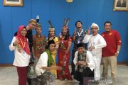 Peneliti obat kanker dari tanaman Bajakah, Yazid Rafli Akbar (ketiga kiri), bersama Aysa Aurelia Maharani (keempat kiri), dan Anggina Rafitri (kelima kiri) berfoto bersama sejumlah staf Kementerian Pendidikan dan Kebudayaan di Jakarta, Sabtu (17/8/2019). ANTARA/Abdu Faisal/aa.