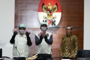 Petugas KPK menunjukkan barang bukti disaksikan oleh Wakil Ketua KPK Alexander Marwata (kanan) seusai memberikan keterangan pers terkait Operasi Tangkap Tangan (OTT) kasus dugaan suap jaksa di Gedung KPK, Jakarta, Selasa (20/8/2019). KPK menetapkan tiga orang tersangka dalam kasus dugaan suap terkait proyek pada Dinas Pekerjaan Umum, Perumahan, dan Kawasan Permukiman (PUPKP) Kota Yogyakarta TA 2019 diantaranya Jaksa di Kejaksaan Negeri Yogyakarta Eka Safitra, Jaksa di Kejaksaan Negeri Surakarta Satriawan Sulaksono, dan Direktur Utama PT Manira Arta Mandiri Gabriella Yuan Ana dengan barang bukti uang senilai Rp110.870.000. ANTARA FOTO/Rivan Awal Lingga/pras.