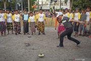 Seorang laki-laki bermain gasing pada ÔÕFestival BegasinganÕÕ di Mataram, NTB, Minggu (25/8/2019). Festival Begasingan yang digelar hingga 27 Agustus 2019 tersebut untuk melestarikan serta memperkenalkan kembali olahraga tradisional gasing Lombok kepada generasi muda saat ini serta dalam rangka kegiatan Mentaram berolahraga II dan memeriahkan HUT ke-26 Kota Mataram. ANTARA FOTO/Ahmad Subaidi/ama.