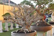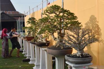 Pengunjung mengamati bonsai yang dipamerkan di depan Pendapa Kabupaten Ponorogo, Jawa Timur, Minggu (25/8/2019). Pameran bonsai dalam rangka perayaan Grebeg Suro yang diikuti ratusan kolektor bonsai dari sejumlah daerah di Jawa Timur dan Jawa Tengah tersebut berlangsung hingga 31 Agustus 2019. ANTARA FOTO/Siswowidodo/ama.