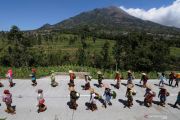 Sejumlah warga membawa hasil pertanian buah dan sayur saat mengikuti Kirab Kerbau Merbabu-Merapi di Selo, Boyolali, Jawa Tengah, Sabtu (31/8/2019). Kirab tersebut merupakan rangkaian tradisi 1 Suro dalam penanggalan Jawa atau 1 Muharram 1441 H dalam penanggalan Islam sebagai bentuk wujud syukur warga lereng Gunung Merbabu dan Gunung Merapi kepada Tuhan Yang Maha Esa atas perlindungan dan hasil pertanian. ANTARA FOTO/Aloysius Jarot Nugroho/hp.