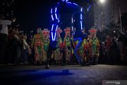 Sejumlah warga dengan membawa obor elektrik mengikuti Jakarta Muharram Festival di Jalan MH Thamrin, Jakarta, Sabtu (31/08/2019). Kegiatan tersebut dalam rangka menyambut tahun baru islam 1 Muharram 1441 H. ANTARA FOTO/Aprillio Akbar/hp/pri