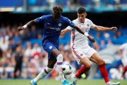Pesepak bola Chelsea Tammy Abraham (kiri) berupaya melewati pesepak bola Sheffield United John Egan dalam laga pekan keempat Liga Inggris, di Stadion Stamford Bridge, London, Inggris, Sabtu (31/8/2019). Tammy Abraham berhasil membuat dua gol Chelsea pada babak pertama. ANTARA FOTO/Reuters-Paul Childs/hp.
