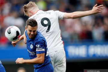 Pesepak bola Chelsea Cesar Azpilicueta (kiri) berebut bola atas dengan pesepak bola Sheffield United Oliver McBurnie dalam laga pekan keempat Liga Inggris, di Stadion Stamford Bridge, London, Inggris, Sabtu (31/8/2019). ANTARA FOTO/Reuters-David Klein/hp.