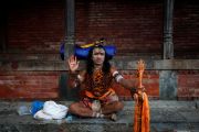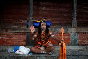 Umat Hindu mengenakan dandanan Dewa Siwa saat festival Teej di kuil Pashupatinath, Kathmandu, Nepal, Senin (2/9/2019). Festival tiga hari tersebut memperingati menyatunya Dewi Parwati dan Dewa Siwa dan bertujuan merayakan cinta dan pengabdian istri. ANTARA FOTO/REUTERS/Navesh Chitrakar/foc.