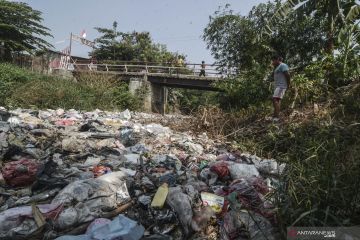Warga mengamati Kali Jambe yang dipenuhi sampah di Desa Mangun Jaya, Tambun, Kabupaten Bekasi, Rabu (4/9/2019). Menurut warga Kali Jambe dipenuhi limbah rumah tangga selama 3 bulan akibat tidak berfungsinya Tempat Pembuangan Sampah (TPS) disekitar lokasi.ANTARA FOTO/ Fakhri Hermansyah/ama.
