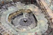 Suasana Masjidil Haram saat dilihat dari balcony The Makkah Clock Tower Museum dengan tinggi 601 m berlantai 85. Pasca-musim haji, Masjidil Haram kini dipadati jamaah umrah yang datang dari berbagai negara, Jumat (6/9/2019). ANTARA/Hanni Sofia/am.