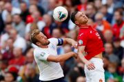 Kapten timnas Inggris Harry Kane (kiri) berebut bola atas dengan pesepak bola Bulgaria Vasil Bozhikov dalam laga kualifikasi Piala Eropa 2020, di Stadion Wembley, London, Inggris, Sabtu (7/9/2019). Inggris membungkam Bulgaria 4-0 dan Harry Kane berhasil membuat hat-trick dalam pertandingan ini, ANTARA FOTO/Reuters-Andrew Boyers/hp.