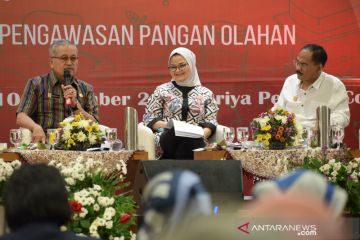 (kiri-kanan): moderator talkshow Setyoko Agustina, Sekretaris Daerah Jawa Tengah Sri Puryono KS, Kepala Badan Pengawas Obat dan Makanan (BPOM) Penny Lukito, Dekan Fakultas Peternakan dan Pertanian Universitas Diponogoro Bambang Waluyo Hadi Eko Prasetiyono, Perwakilan Gabungan Pengusaha Makanan dan Minuman Indonesia (GAPMMI) Susana. ANTARA/Anom Prihantoro/am.
