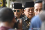 Presiden ke-6 Republik Indonesia Susilo Bambang Yudhoyono (kanan) didampingi putranya Agus Harimurti Yudhoyono (kiri) melayat ke rumah duka almarhum Presiden ke-3 Republik Indonesia BJ Habibie di kawasan Patra Kuningan, Jakarta, Kamis (12/9/2019). BJ Habibie meninggal dunia pada hari Rabu (11/9/2019) pukul 18.05 WIB setelah menjalani perawatan di RSPAD dan akan dimakamkan di Taman Makam Pahlawan Nasional Utama Kalibata, Jakarta. ANTARA FOTO/Hafidz Mubarak A/foc.