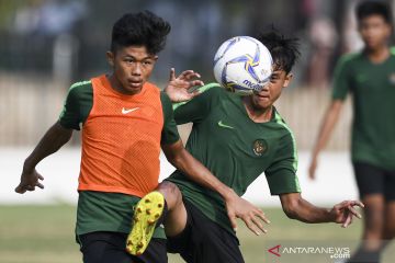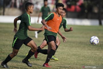 Pemain Timnas U-16 mengikuti latihan di Lapangan ABC Gelora Bung Karno, Senayan, Jakarta, Jumat (13/9/2019). Latihan tersebut untuk persiapan jelang laga Grup G Kualifikasi Piala Asia U-16 2020 di Stadion Madya Gelora Bung Karno. ANTARA FOTO/Hafidz Mubarak A/hp.