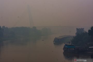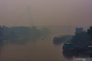 Kabut asap menyelimuti Jembatan Siak IV di Kota Pekanbaru, Riau, Jumat (13/9/2019). Pusat Pengendalian Pembangunan Ekoregion (P3E) Sumatera menyatakan hasil pengukuran Indeks Standar Pencemar Udara (ISPU) sebagian besar daerah di Riau dalam kategori berbahaya karena tercemar asap Karhutla. ANTARA FOTO/FB Anggoro/hp.