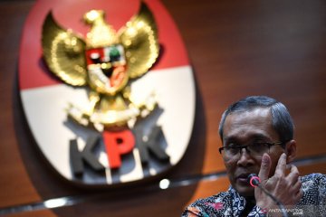 Wakil Ketua KPK Alexander Marwata (kanan) didampingi Juru Bicara Febri Diansyah meninggalkan ruangan seusai konferensi pers di kantor KPK, Jakarta, Rabu (18/9/2019). KPK menetapkan Menteri Pemuda dan Olahraga Imam Nahrawi dan sekretaris pribadinya Miftahul Ulum sebagai tersangka baru kasus dugaan suap penyaluran bantuan dana hibah KONI, Imam diduga telah melakukan penerimaan sebanyak Rp26,5 miliar. ANTARA FOTO/Sigid Kurniawan/foc.