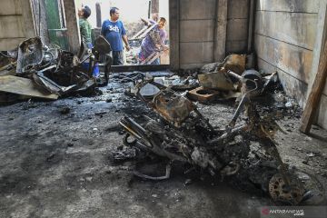 Warga mencari sisa harta benda yang masih bisa diselamatkan di rumahnya pascakebakaran di kawasan Balimester, Jatinegara, Jakarta, Sabtu (21/9/2019). Kebakaran yang terjadi pada Sabtu (21/9/2019) dini hari tersebut menghanguskan 129 rumah, diduga terjadi akibat hubungan pendek (korsleting) arus listrik. ANTARA FOTO/Galih Pradipta/wsj.