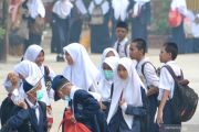 Sejumlah siswa bersiap pulang usai mendapat pengumuman sekolah diliburkan, di SD Negeri 130 Palembang, Sumsel, Senin (23/9/2019). Memburuknya kondisi udara akibat kabut asap membuat Dinas Pendidikan setempat mengeluarkan edaran untuk meliburkan sekolah hingga hari Kamis atau hingga kondisi udara membaik. ANTARA FOTO/Feny Selly/ama.