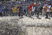 Foto: Polisi berbuka puasa usai bertugas mengamankan unjuk rasa