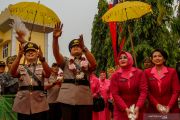 Kapolda Riau yang baru Irjen Pol Agung Setya Imam Effendi (kiri) dan Kapolda Riau sebelumnya Irjen Pol Widodo Eko Prihastopo (kanan) melakukan salam komando usai mengikuti Farewell dan Welcome Parade Kapolda Riau di lapangan Satbrimobda Riau, di Pekanbaru, Riau, Kamis (3/10/2019). Irjen Pol Widodo Eko Prihastopo kini menjabat sebagai Pati Baintelkam Badan Intelijen Negara, dan digantikan dengan Irjen Pol Agung Setya Imam Effendi sebagai Kapolda Riau. ANTARA FOTO/Rony Muharrman/hp.