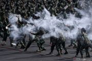 Prajurit TNI memperagakan bela diri dalam Gladi Bersih HUT Ke-74 TNI di Lanud Halim Perdanakusuma, Jakarta TImur, Kamis (3/10/2019). HUT Ke-74 TNI akan diperingati pada Sabtu 5 Oktober 2019 dengan mengangkat tema TNI Profesional Kebanggaan Rakyat. ANTARA FOTO/Sigid Kurniawan/hp.