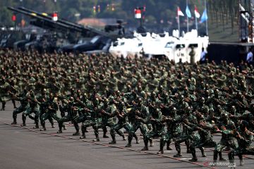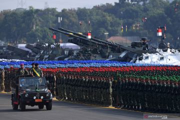 Prajurit TNI dengan alutsista melakukan defile dalam Gladi Bersih HUT Ke-74 TNI di Lanud Halim Perdanakusuma, Jakarta TImur, Kamis (3/10/2019). HUT Ke-74 TNI akan diperingati pada Sabtu 5 Oktober 2019 dengan mengangkat tema TNI Profesional Kebanggaan Rakyat. ANTARA FOTO/Sigid Kurniawan/hp.