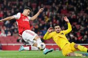 Pesepak bola Arsenal Dani Ceballos menendang bola ke dalam gawang lawannya Standard Liege untuk mencetak gol keempat bagi timnya dalam laga Group F Liga Champions, di Stadion Emirates, London, Inggris, Kamis (3/10/2019). Arsenal berhasil membungkam tamunya 4-0 dan Martinelli menyumbang dua gol untuk timnya dalam pertandingan ini. ANTARA FOTO/Reuters-David Klein/hp.