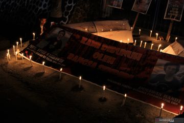 Mahasiswa Fakultas Teknik Universitas Haluoleo Kendari menyalakan lilin di lokasi tertembaknya dua mahasiswa di Jalan Abdul Silondae , Kendari, Sulawesi Tenggara, Kamis (10/10/2019). Aksi doa bersama tersebut juga guna mendesak Polri untuk segera mengungkap pelaku penembakan pada Kamis (26/9/2019) yang menyebabkan tewasnya Immawan Randi dan La Ode Yusuf Wijaya. ANTARA FOTO/Jojon/hp.