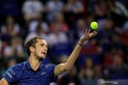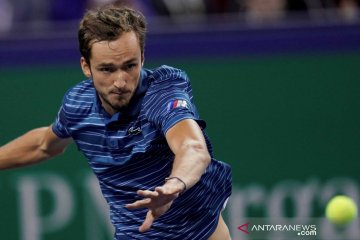 Petenis Daniil Medvedev asal Rusia mengembalikan bola ke arah lawannya petenis Alexander Zverev asal Jerman pada pertandingan babak final tunggal putra Kejuaraan Shanghai Masters di Qi Zhong Tennis Center, Shanghai, China, Minggu (13/10/2019). Duel antara dua petenis muda tersebut dimenangkan oleh Daniil Medvedev dengan skor 6-4, 6-1. ANTARA FOTO/REUTERS/Aly Song/wsj.