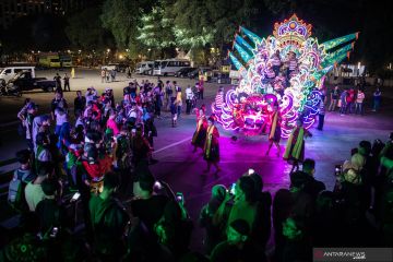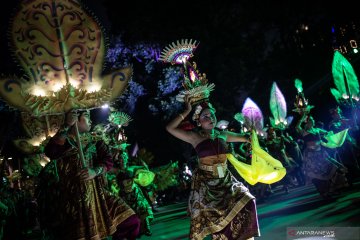 Sejumlah peserta mengikuti pawai budaya bertajuk Parade Digdaya Nusantara di Kompleks Gelora Bung Karno, Senayan, Jakarta, Minggu (13/10/2019). Pawai budaya yang menampilkan pertunjukan seni secara kolaboratif itu merupakan rangkaian dari kegiatan Pekan Budaya Nasional. ANTARA FOTO/Aprillio Akbar/wsj.