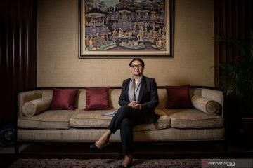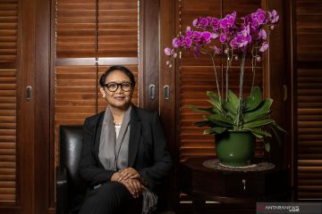 Menteri Luar Negeri Retno Marsudi berpose dalam sesi wawancara khusus dengan Kantor Berita Antara di Kantor Kementerian Luar Negeri, Jakarta, Senin (14/10/2019). ANTARA FOTO/Aprillio Akbar/hp.