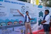 Direktur Bisnis PLN Regional Sulawesi Syamsul Huda (kanan) meninjau lokasi peluncuran program unggulan Perusahaan Listrik Negara (PLN) regional Sulawesi di Kota Gorontalo, Gorontalo, Jumat (18/10/2019). Program unggulan PLN tersebut yaitu Yantek EAM, Kota Sejuta Cahaya, KAM RAM serta Toraja Spirit Competition yang bertujuan meningkatkan kualitas pelayanan kepada pelanggan. ANTARA FOTO/Adiwinata Solihin/hp.