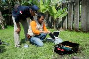 Petugas Badan Nasional Penanggulangan Bencana (BNPB) bersama Badan Meteorologi, Klimatologi dan Geofisika (BMKG) serta Institut Teknologi Bandung (ITB) memasang seismograf di Desa Latuhalat, Kecamatan Nusaniwe, Kota Ambon, Maluku, Jumat (18/10/2019). Sebanyak 11 seismograf akan dipasang di sejumlah lokasi di Provinsi Maluku guna meneliti lebih lanjut karakteristik gempa susulan pasca gempa magnitudo M 6,5 pada Kamis (26/9/2019) lalu. ANTARA FOTO/izaac mulyawan/hp.