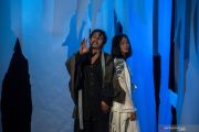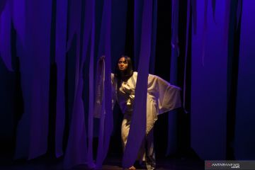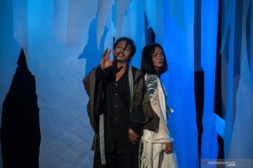 Seniman dari kelompok Jalan Teater menampilkan adegan berjudul Morito dan Dua Pelayan di Rashomon di Institut Francais Indonesia (IFI) Bandung, Jawa Barat, Sabtu (19/10/2019). Teater yang diadaptasi dari cerpen asal Jepang karya Ryunosuke Akutagawa tersebut berkisah tentang bencana yang muncul dari manusia seperti pembunuhan, perselingkuhan serta gibah dan membongkar aib sesama manusia. ANTARA FOTO/Novrian Arbi/pras.