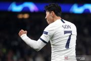 Pesepak bola Tottenham Hotspur Son Heung-min (kedua kanan) melakukan selebrasi setelahmencetak gol ke gawang lawannya Red Star Belgrade, dalam babak lanjuta Group B Liga Champions, di Stadion Tottenham Hotspur, London, Inggris, Selasa (22/10/2019). Tottenham mengalahkan tamunya Belgrade 5-0. dan Heung-min menyumbang dua gol bagi timnya dalam pertandingan ini. ANTARA FOTO/Reuters- -Hannah Mckay/hp.