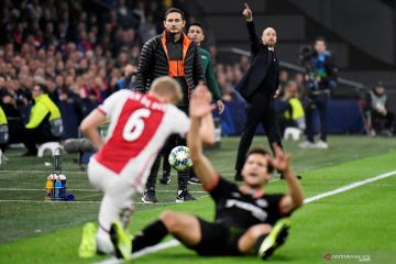 Pelatih Chelsea Frank Lampard dan pelatih Ajax Erik ten Hag mengamati pertandingan Liga Champions Grup H di Johan Cruijff Arena, Amsterdam, Rabu (23/10/2019). Chelsea menang tipis 1-0. ANTARA FOTO/Action Images via Reuters/Lee Smith/pras.