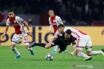 Pemain Chelsea Jorginho berebut bola dengan pemain Ajax Klaas-Jan Huntelaar pada pertandingan Liga Champions Grup H di Johan Cruijff Arena, Amsterdam, Rabu (23/10/2019). Chelsea menang tipis 1-0. ANTARA FOTO/Action Images via Reuters/Lee Smith/pras.