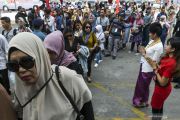Keluarga korban kecelakaan pesawat Lion Air JT 610 menaiki KRI Semarang 594 untuk melakukan prosesi tabur bunga di lokasi jatuhnya pesawat Lion Air di Pelabuhan Tanjung Priok, Jakarta, Selasa (29/10/2019). Acara tabur bunga digelar dalam rangka memperingati satu tahun peristiwa jatuhnya pesawat Lion Air bernomor penerbangan JT-610 rute Jakarta-Pangkal Pinang di perairan Karawang pada 28 Oktober 2018. ANTARA FOTO/Galih Pradipta/ama.