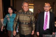 Chairman Indonesia Bureau of Economic Research (IBER) Mari Pangestu (kiri), Gubernur Bank Indonesia Perry Warjiyo (tengah) dan Anggota Dewan Kehormatan Bank Indonesia Institute Chatib Basri, berjalan bersama sesaat sebelum pembukaan simposium internasional Asias Trade and Economic Priorities in 2020, yang diselenggarakan IBER, di Jakarta, Selasa (29/10/2019). Simposium diselenggarakan untuk membahas prioritas kebijakan ekonomi dan perdagangan Asia pada tahun 2020, termasuk resiko utama yang dihadapi, serta upaya-upaya yang dapat dilakukan untuk memperkuat ketahanan ekonomi dan sistem keuangan Asia tidak terkecuali melalui Forum G20. ANTARA FOTO/Audy Alwi/pras.