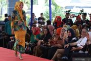 Pegawai Kantor Wilayah Jawa Timur Kementerian Hukum dan HAM memamerkan busana batik yang dipakainya saat peragaan busana batik Hari Dharma Karyadhika (HDKD) 2019 di Surabaya, Jawa Timur, Selasa (29/10/2019). Sebanyak 183 busana batik karya Warga Binaan Pemasyarakatan (WBP) di Lembaga Pemasyarakatan (Lapas) atau Rumah Tahanan (Rutan) di Jawa Timur itu dipamerkan dalam peragaan busana tersebut. ANTARA FOTO/Didik Suhartono/ama.