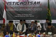 Wakil Ketua Lembaga Dakwah PB Nahdlatul Ulama (LD PBNU) KH Misbahul Munir (kedua kanan depan) bersama Lembaga Dakwah Nahdlatul Ulama (LDNU) Masruhin Abdul Majid (kiri) memimpin Istighosah untuk Indonesia Aman dan Damai di halaman gedung PB Nahdlatul Ulama (NU) Jakarta, Rabu (30/10/2019). Istighosah tersebut untuk mendoakan Indonesia agar aman dan damai pasca Pemilu serentak 2019 serta Ijazah Kubro Hizib Nashor. ANTARA FOTO/Nova Wahyudi/hp.
