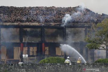 Api membakar Istana Shuri yang merupakan salah satu situs warisan dunia di Naha, Okinawa, Jepang, Kamis (31/10/2019) dini hari. ANTARA FOTO/Kyodo/via REUTERS /pras.
