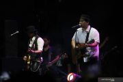 Vokalis dan gitaris grup band Padi Reborn, Andy Fadli Arifuddin (kanan) dan Satrio Yudi Wahono atau Piyu menghibur penggemarnya dengan lagu Semua Tak Sama saat konser untuk menyemarakkan Festival Syariah Ekonomi (Fesyar) Indonesia 2019 di Surabaya, Jawa Timur, Kamis (7/11/2019). Fesyar 2019 yang berlangsung hingga 9 November 2019 tersebut mengusung tema "Sinergi Membangun Ekonomi Syariah Indonesia." ANTARA FOTO/Moch Asim/pras.