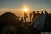Sejumlah wisatawan menanti matahari terbit di Gunung Telomoyo, Desa Sepakung, Banyubiru, Kabupaten Semarang, Jawa Tengah, Minggu (10/11/2019). Gunung yang memiliki ketinggian 1.894 mdpl itu menjadi salah satu destinasi wisata alam favorit bagi wisatawan domestik maupun mancanegara karena menawarkan pemandangan alam matahari terbit hingga tenggelam serta sejumlah gunung di antaranya yaitu Gunung Merbabu, Gunung Andong, Gunung Sindoro, Gunung Sumbing, dan Gunung Ungaran. ANTARA FOTO/Aji Styawan/hp.