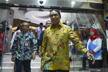 Menpora Zainudin Amali (tengah) berjalan bersama Sesmenpora Gatot S Dewa Broto (kiri) sebelum memberikan keterangan pers terkait agenda olahraga yang akan dihadapi Indonesia di Kemenpora, Jakarta, Kamis (14/11/2019). Menpora menjelaskan tentang pelaksanaan Pekan Olahraga Pelajar Nasional (POPNAS) yang akan diselenggarakan di Jakarta dan kesiapan kontingen Indonesia di Sea Games 2019 Manila serta kesiapan Indonesia sebagai tuan rumah Kejuaraan Sepakbola Pelajar tingkat Asia (ASFC) di Balikpapan pada 15-25 November 2019. ANTARA FOTO/Nova Wahyudi/hp.
