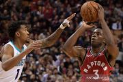 Pebasket Toronto Raptors Anunoby (3) melepaskan bola ke ring lawannya Charlotte Hornets yang dijaga pebasket Malik Monk (1) dalam laga lanjutan NBA, di Scotiabank Arena, Toronto, Ontario, Kanada, Senin (18/11/2019). Raptors berhasil menang atas Hornets 132-96. ANTARA FOTO/Reuters-Dan Hamilton-USA TODAY Sports/hp.